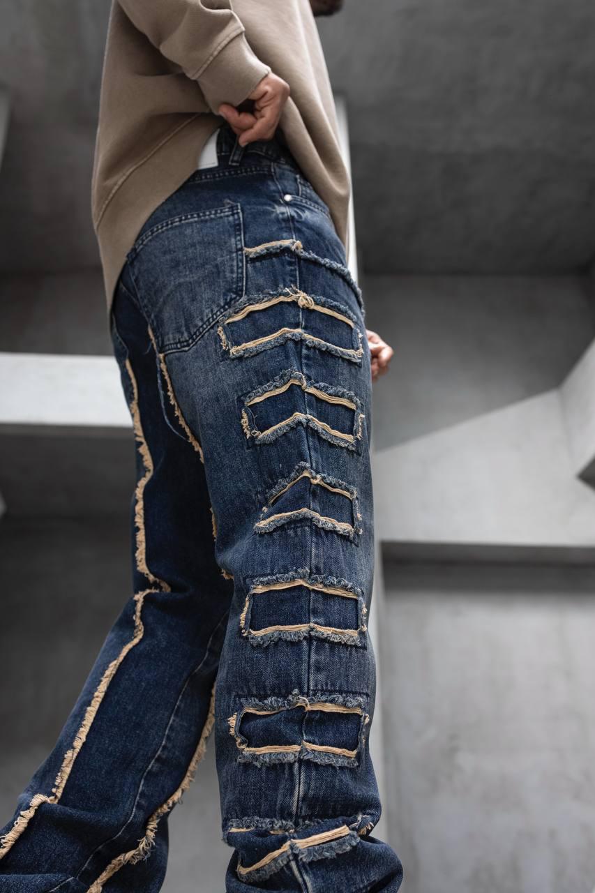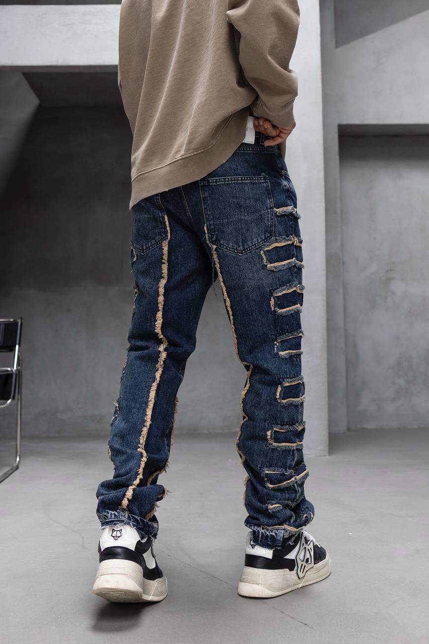 עשוי מדנים כחול כהה איכותי עם שטיפה בגוון עמוק, בשילוב תפרים פרומים וקרעים סימטריים שמעניקים לו מראה גולמי ונועז.